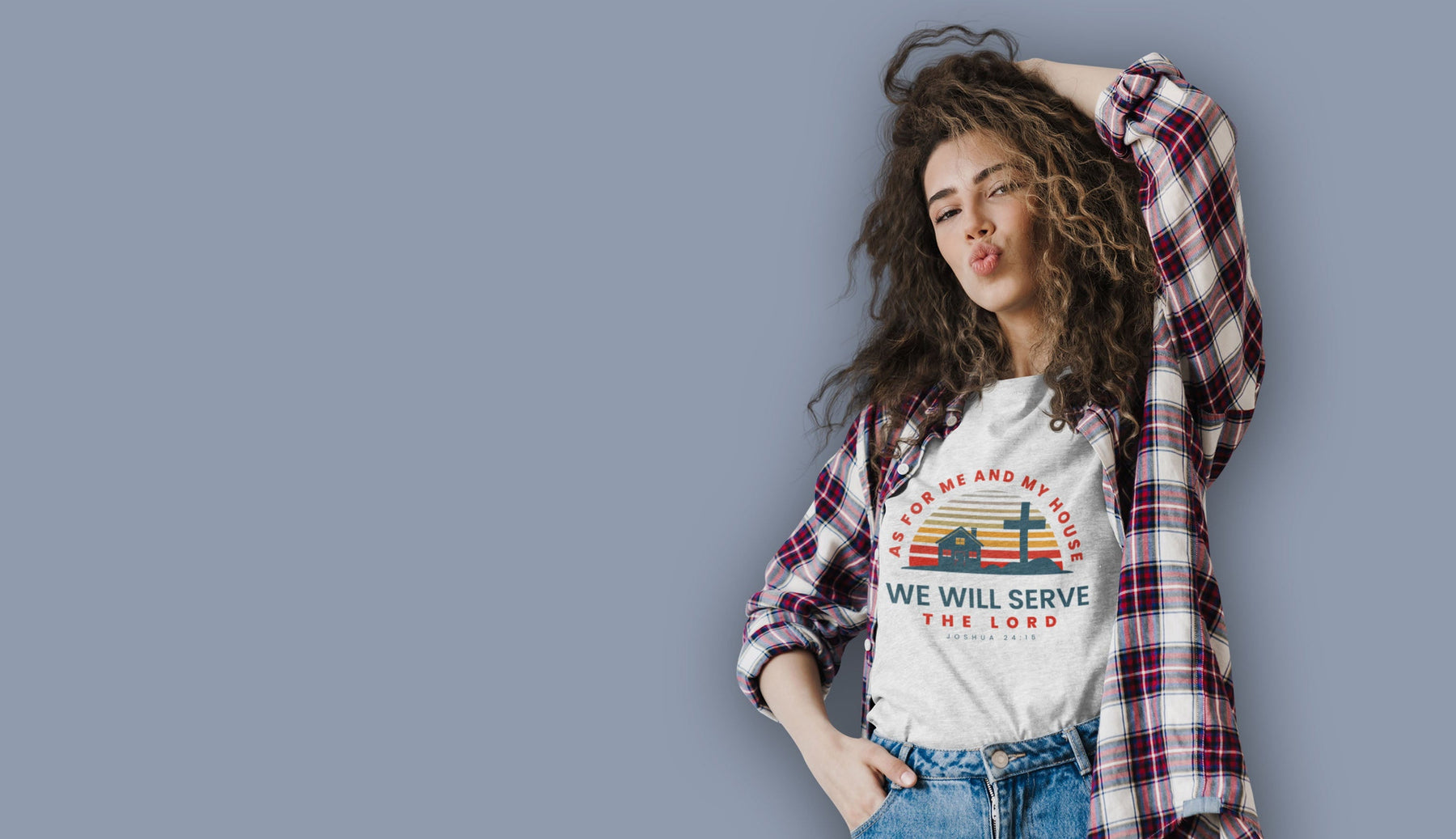 Double-needle stitched collar, shoulders, armholes, cuffs, and hem. Blank product sourced from Honduras, Mexico, or Nicaragua.