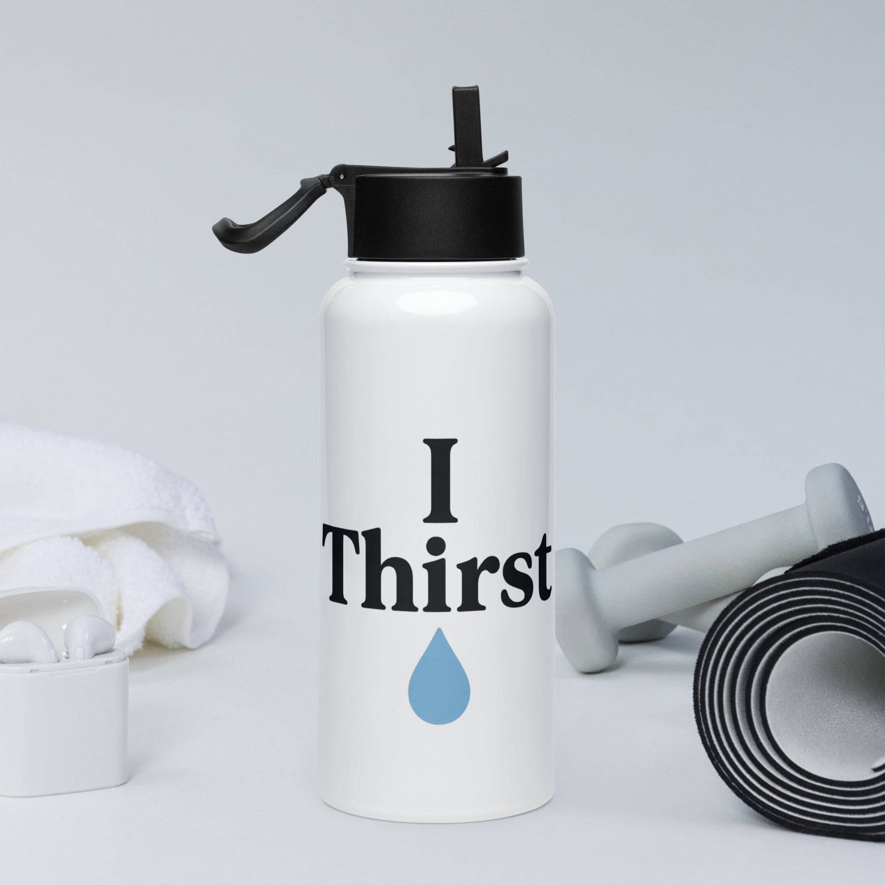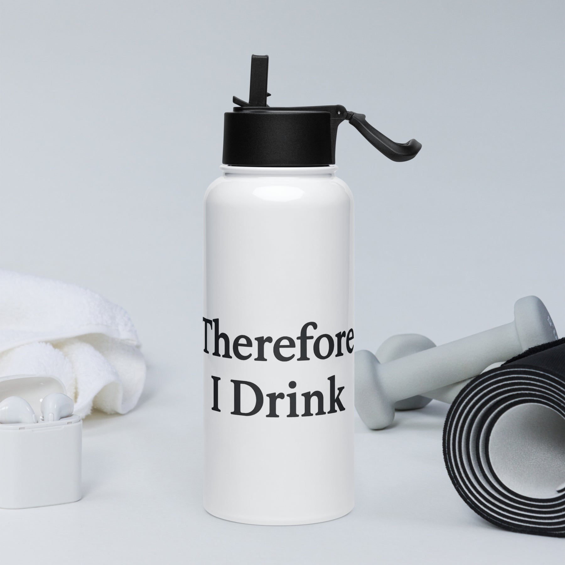 I Thirst Therefore I Drink Stainless steel water bottle with a straw lid