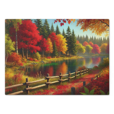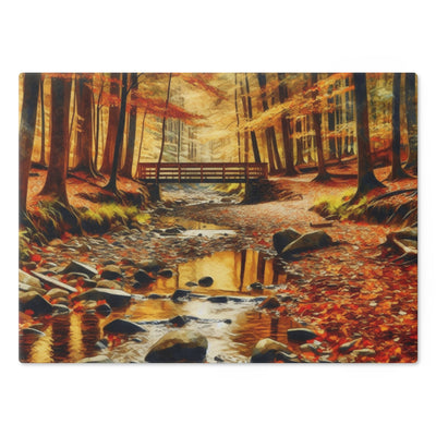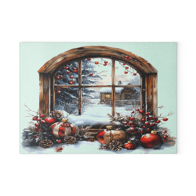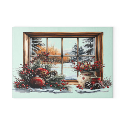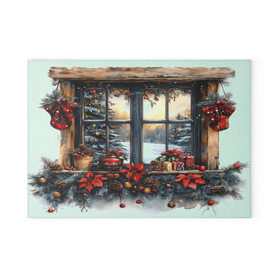 Plaid Stockings & Pine Window Scene Glass Cutting Board