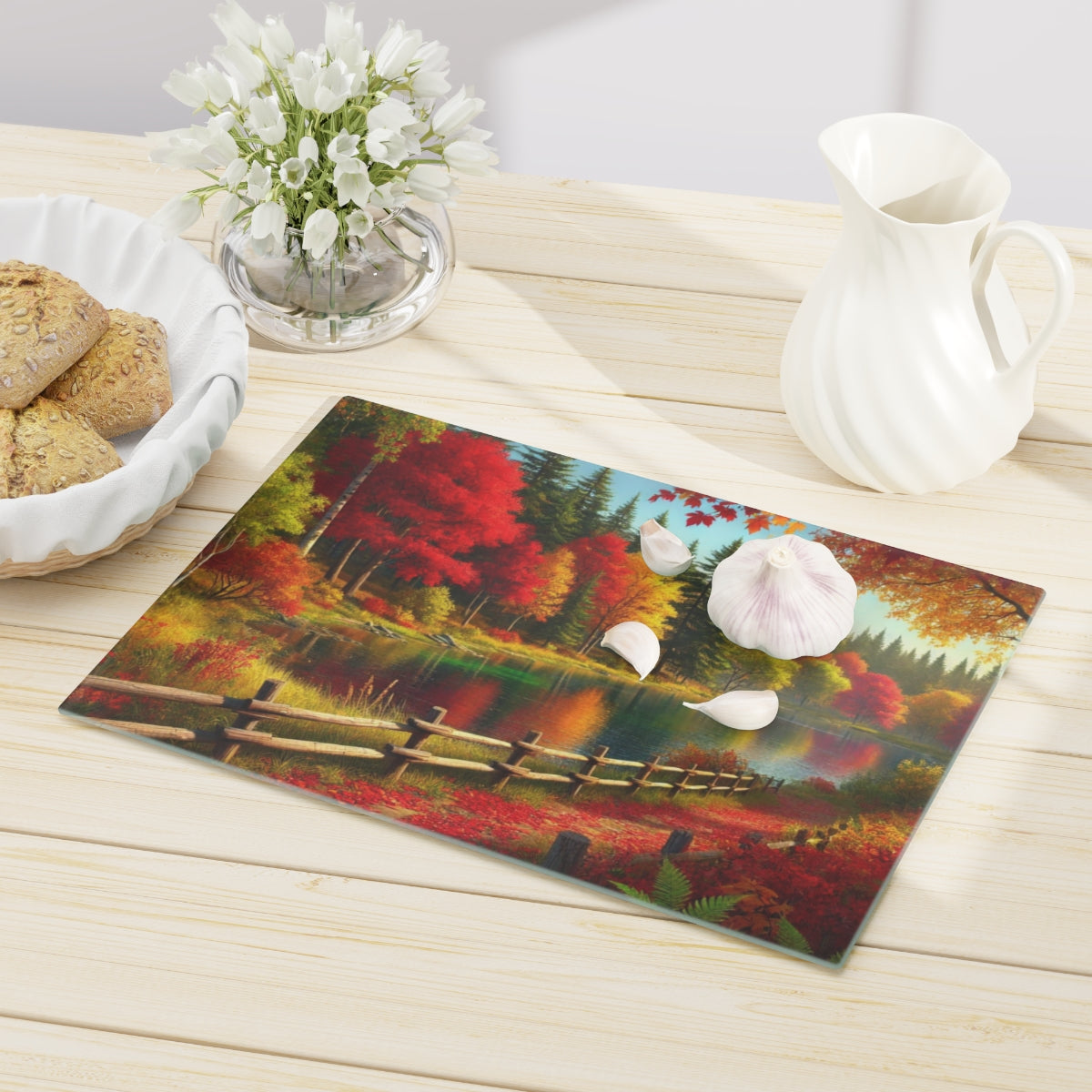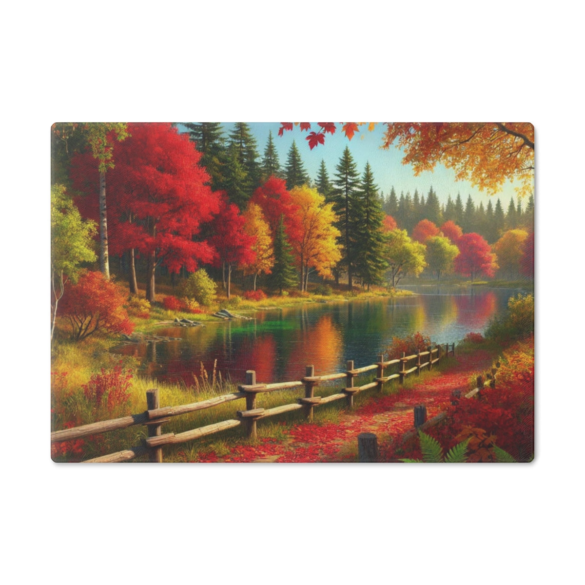 Autumn Reflections by the Lake Cutting Board