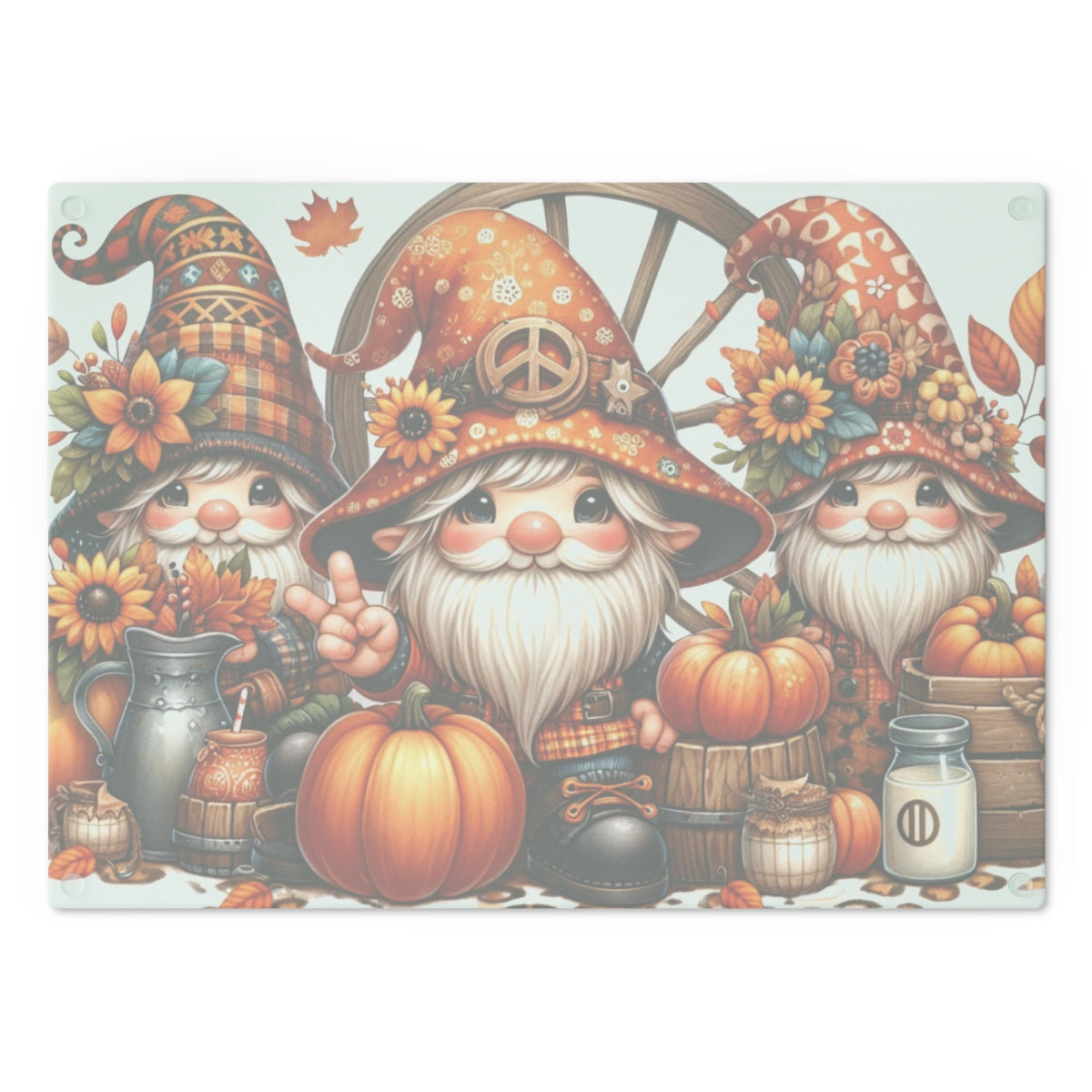 Peaceful Harvest Gnome Trio Cutting Board