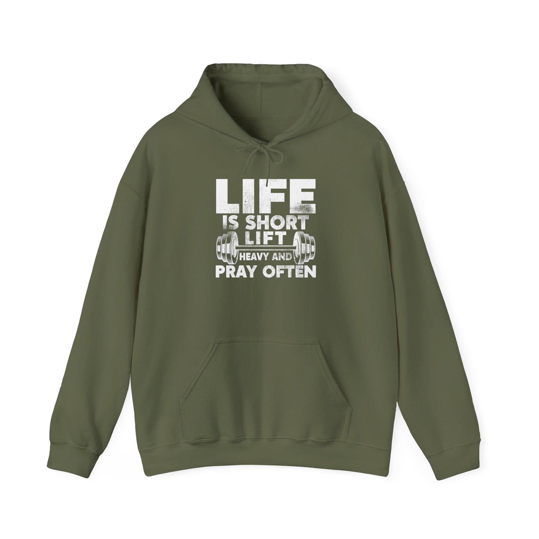 Fuel your day with a wearable mantra: Life Is Short—Lift Heavy & Pray Often. This Unisex Heavy Blend™ hoodie brings the good feels with a soft, substantial fleece that’s perfect for chilly mornings and post-session cooldowns. You’ll appreciate the 50/50 cotton–poly fabric for its durability and lived-in softness, while a kangaroo pocket keeps essentials on hand. The adjustable hood lets you dial in warmth, and a seamless body keeps the profile clean so the bold white barbell graphic really pops—especially on classic black or rich purple. Ethically produced with sustainably sourced materials, it’s a piece you can feel good about wearing and gifting.