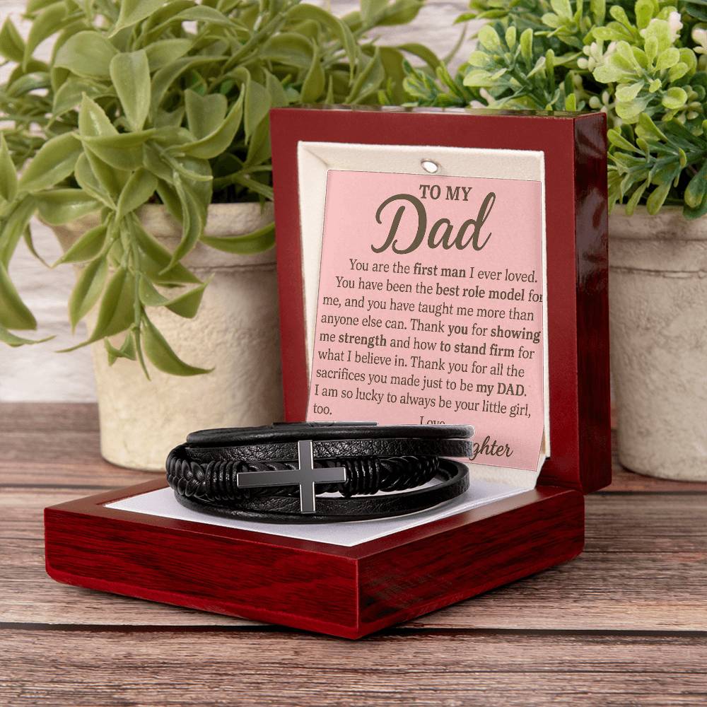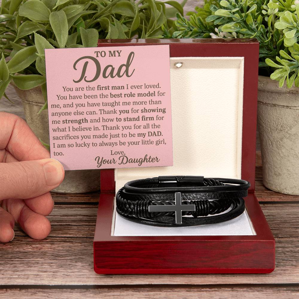 To Dad from Daughter Men's Cross Bracelet