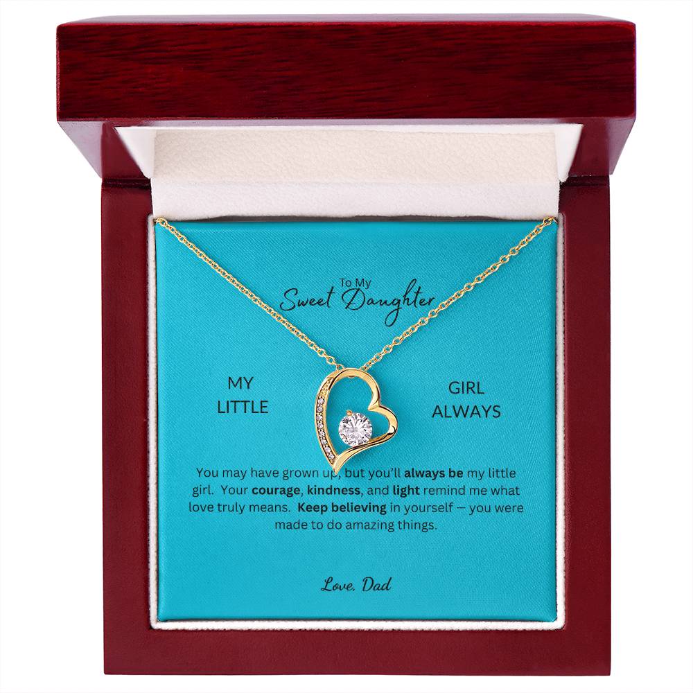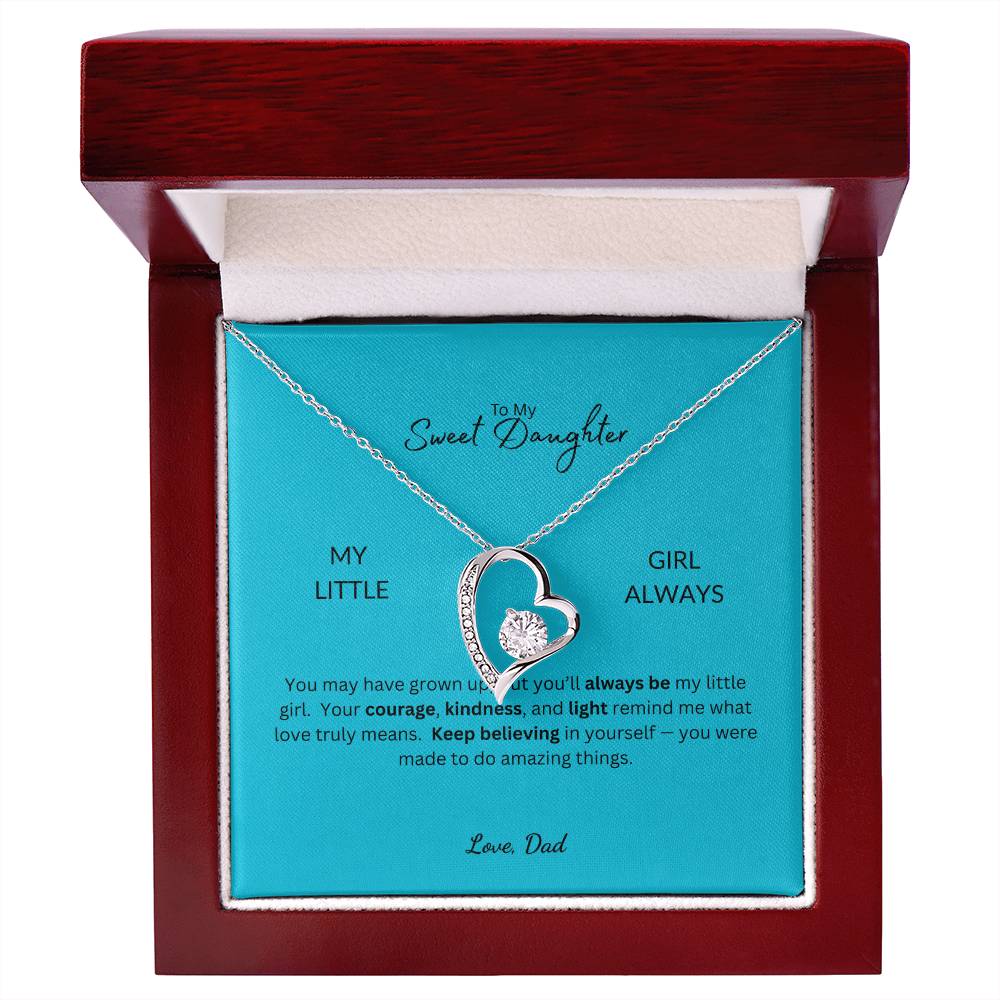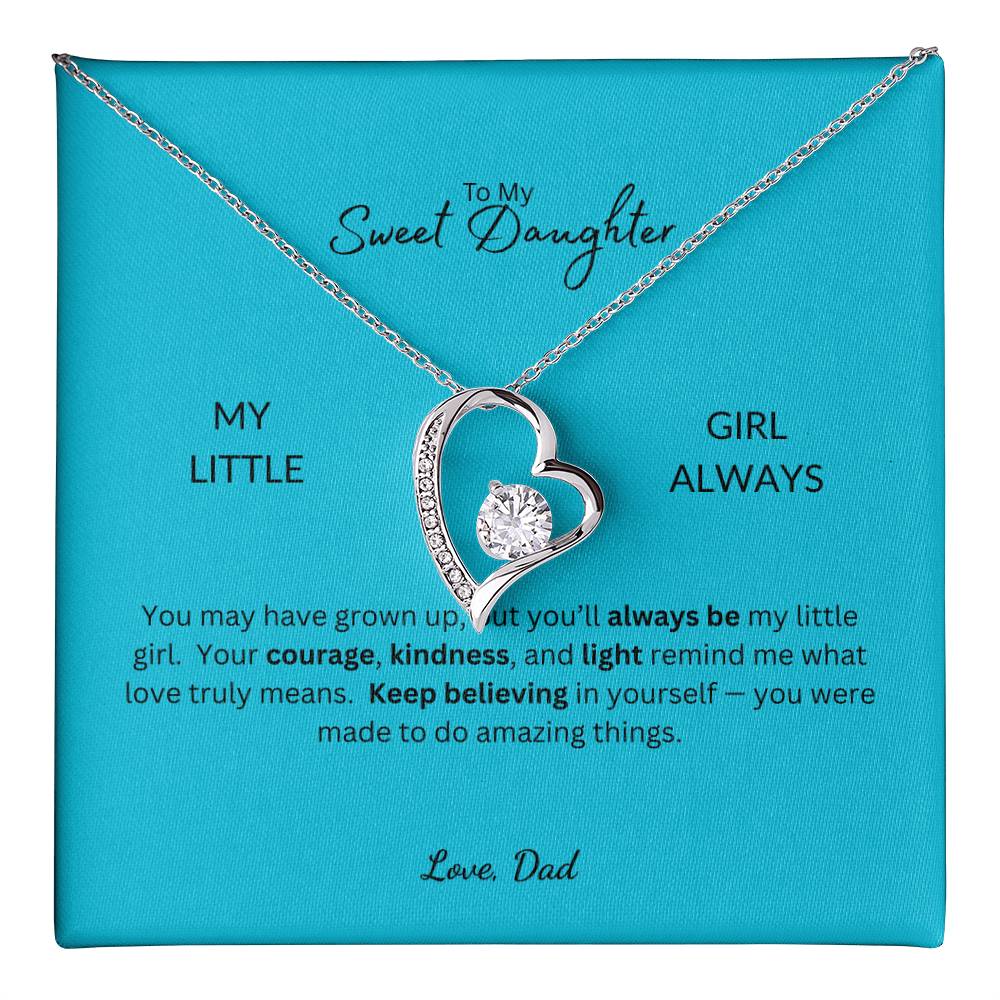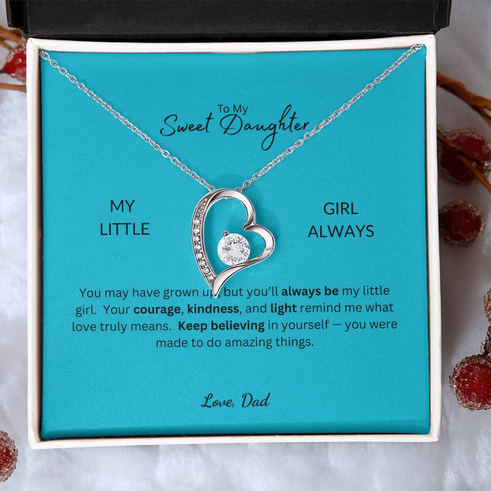 The dazzling Forever Love Necklace is sure to make her heart melt! This necklace features a stunning 6.5mm CZ crystal surrounded by a polished heart pendant embellished with smaller crystals to add extra sparkle and shine. Beautifully crafted with either a white gold or yellow gold finish, be sure to give her a classic gift she can enjoy everyday.