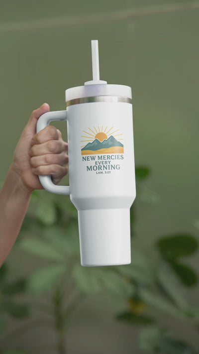 New Mercies Everyday Travel mug with a handle