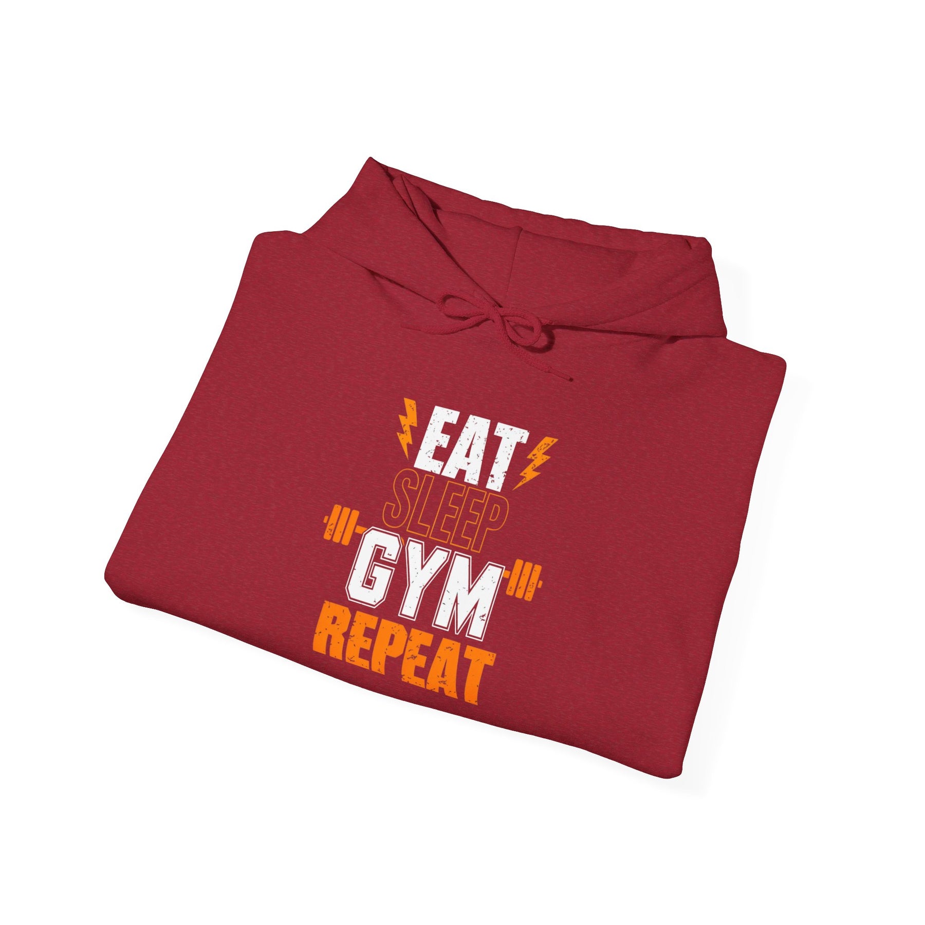 You’ll love how the Relentless Gym Repeat Hoodie turns training into a lifestyle. Front and center, the bold “Eat Sleep Gym Repeat” graphic with barbell icons pops in high-contrast tones—perfect for the grind you live for. The cotton‑poly blend wraps you in plush comfort without weighing you down, so warm‑ups, cool‑downs, and recovery days feel equally dialed in. A classic, unisex fit slides easily over tees or tanks, and the spacious kangaroo pocket keeps hands warm and essentials close.